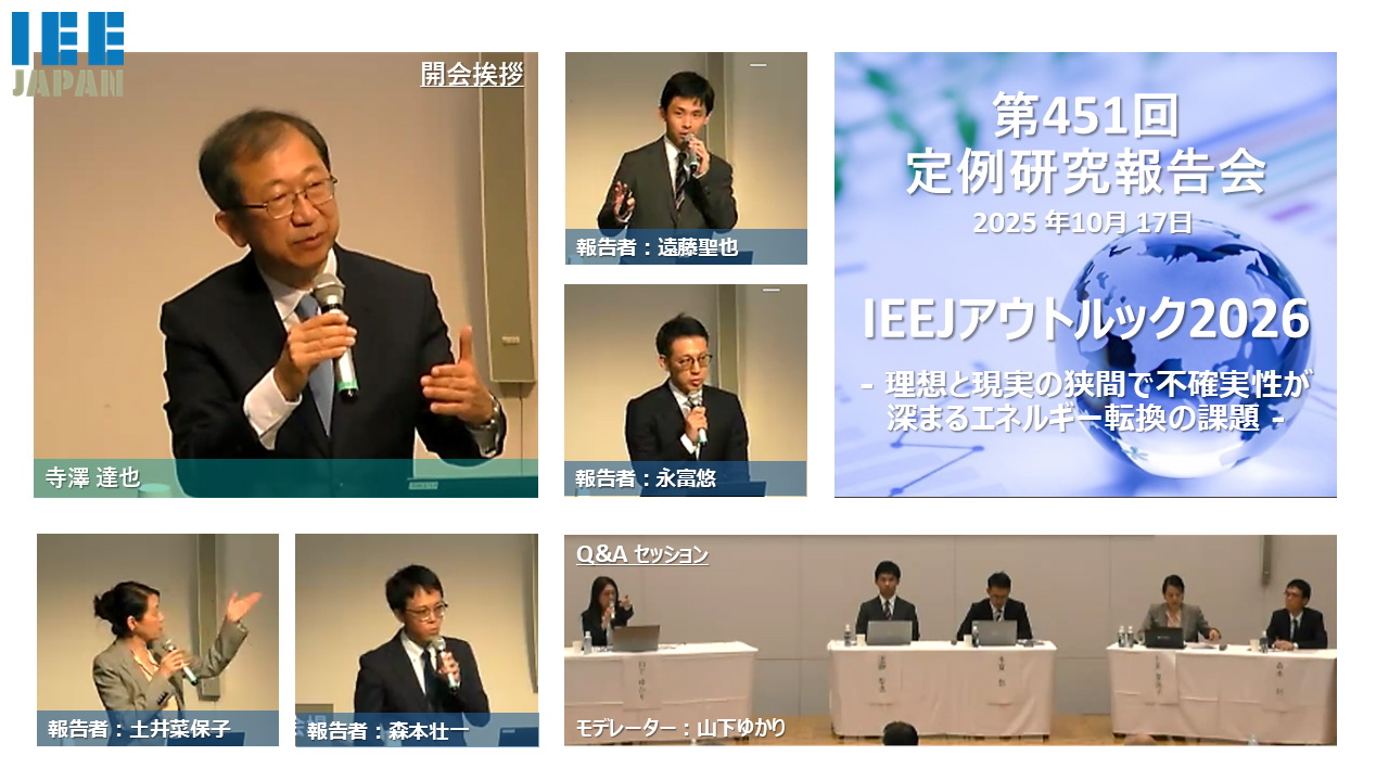 第452回 定例研究報告会「2026年の内外エネルギー情勢の展望と課題」を2025年12月19日に開催いたします。