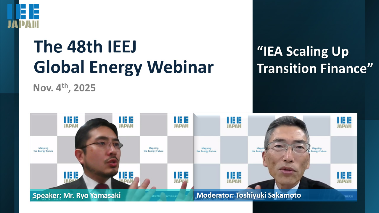講演者:国際エネルギー機関 クリーンエネルギーテクノロジー アナリスト レオナルド・パオリ 氏コメント:経済産業省 前田参事官 第49回 IEEJ Global Energy Webinarの発表資料になります。(2025.12.4)