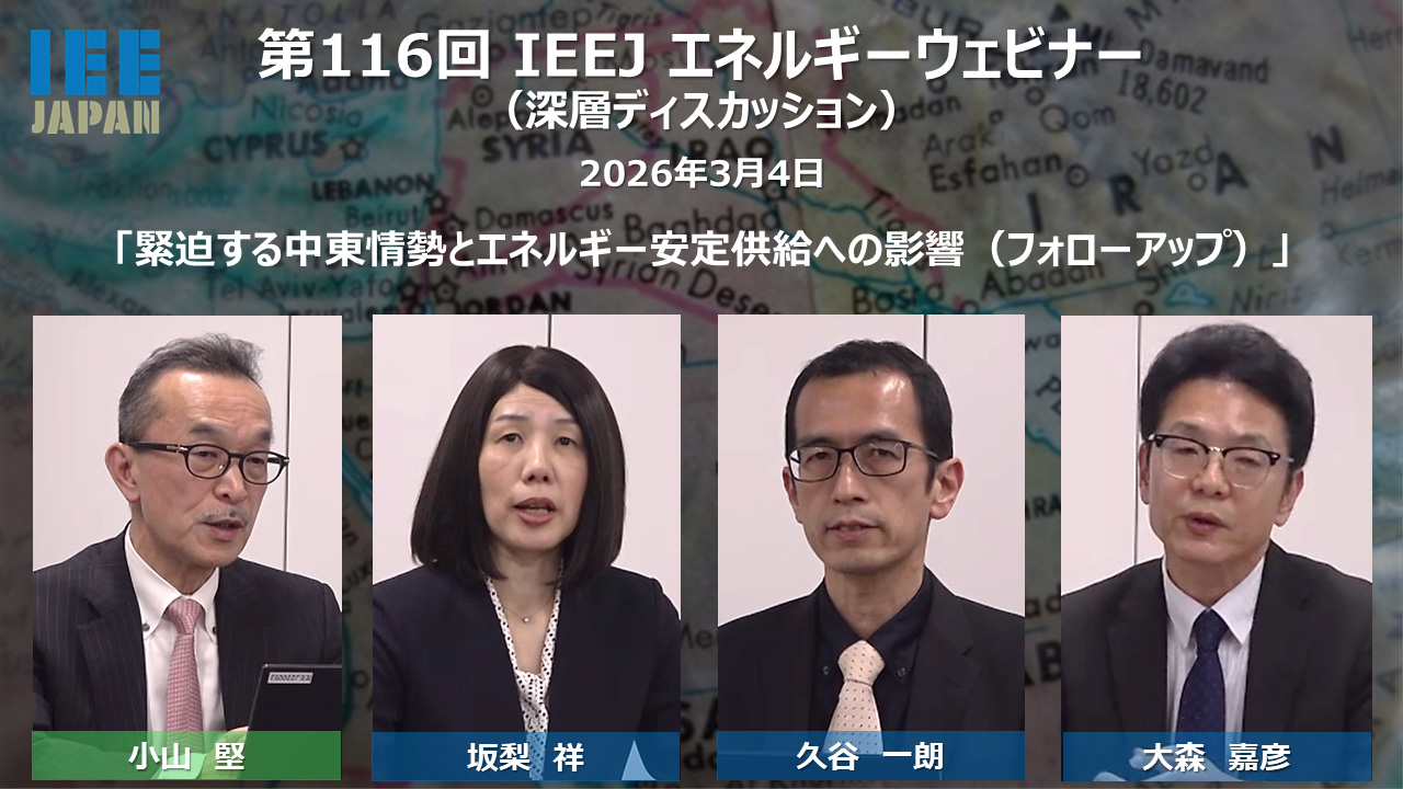 執筆者 坂梨 祥、久谷 一朗、大森 嘉彦(IEEJ)モデレーター:小山 堅(IEEJ) 第116回 IEEJエネルギーウェビナー(深層ディスカッション)の動画になります。(2026.3.26開催)