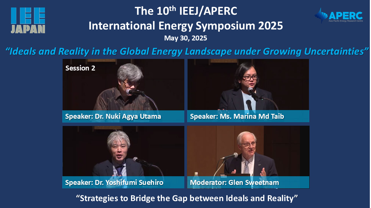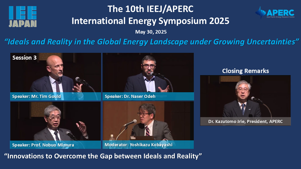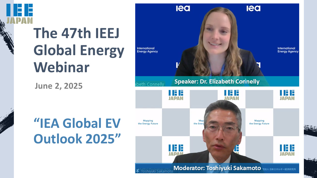 Speakers:Akira Yanagisawa, Tetsuo Morikawa, Takafumi Yanagisawa, Yoshiaki Takahashi, Tohru Shimizu, Kenichi Onishi, Yasushi Ninomiya, Tatsuya Hagita, Kenji Kimura, Seonghee Kim, Tatsuya Terazawa (IEEJ) *Language: Japanese