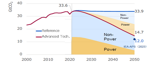 IEEJ has been conducting its long-term global energy outlook analyses annually since 2004. It is one of the few independent thinktanks in the world to conduct such analyses annually. In line with this long history, IEEJ has just released its most recent outlook. IEEJ outlook scenarios are forecast based, portraying two most likely pictures of the energy supply and demand in 2050. This approach is very different from a back-cast outlook which starts from net zero emissions in 2050 and works backwards to portray what technologies would be needed to achieve the goal. The NZE scenario issued by IEA is a typical example of a back-cast outlook. It is quite natural for these two approaches to produce different outcomes. While back-cast based outlooks are very important to highlight a set of necessary technologies, forecast based outlooks show the emissions’ gap relative to an emission’s objective. By comparing them, we get an idea of which policies, actions and investments are required to reach the goal. There are two scenarios presented by IEEJ. The first is the Reference Scenario (REF) which assumes that current trends including policy and technology advancements will continue to take place towards 2050. The second is the Advanced Technologies Scenario (ATS) which incorporates a much higher degree of technology/policy advancement and deployment considered realistically possible.