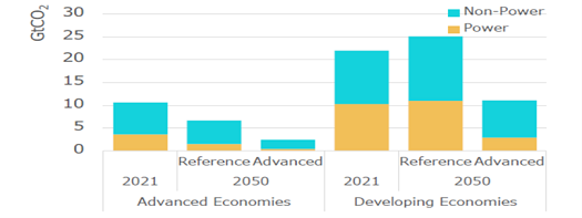 Under the REF, the energy related CO2 emissions will stay roughly at the same level in 2050 as in 2020 but, under the ATS, they will drop to roughly 40% of their current level in 2050. Although a 60% drop will be a significant achievement, it will most likely disappoint those stressing the need to realize carbon neutrality by 2050. To make it clear, IEEJ is not arguing against aiming for carbon neutrality by 2050. The outlook (ATS) simply demonstrates what might happen when we assume maximum development and deployment of technologies considered realistically possible. A closer look at the data reveals that the vast majority of the remaining CO2 emissions under the ATS will be coming from the emerging/developing economies as well as the non-power sectors. In other words, to get closer to carbon neutrality by 2050, much more progress must be made to address specifically those two sources. Energy-related CO2 emissions CO2 emissions by region