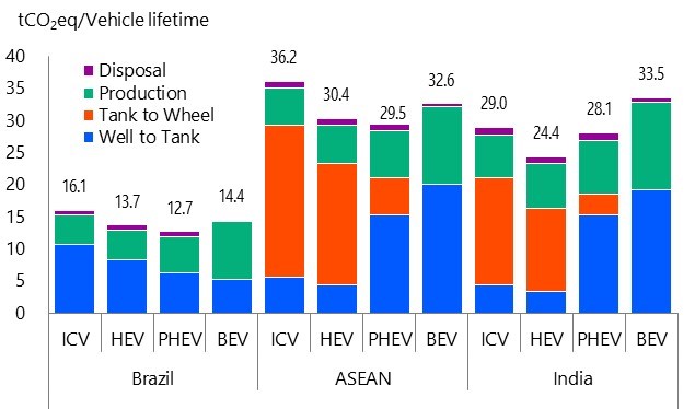3. In Brazil, ASEAN, and India, promotion of BEVs can be counterproductive today.